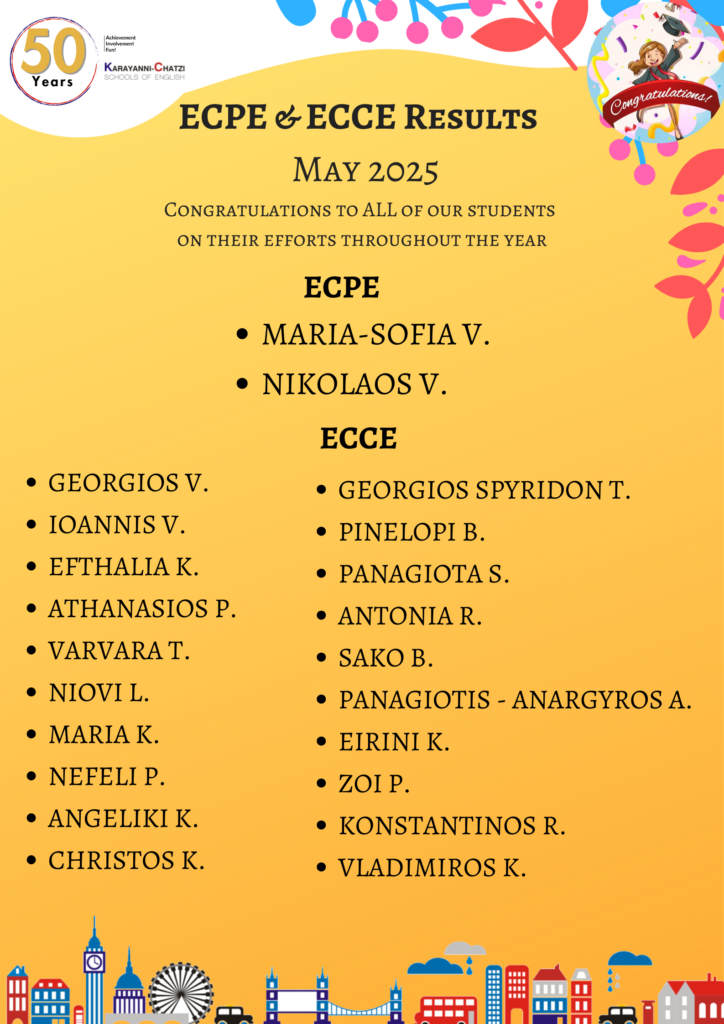 Επιτυχόντες εξετάσεων ECPE (Proficiency) & ECCE (Lower)Ελληνοαμερικανικής Ένωσης, Μαΐου, 2025 Read More »